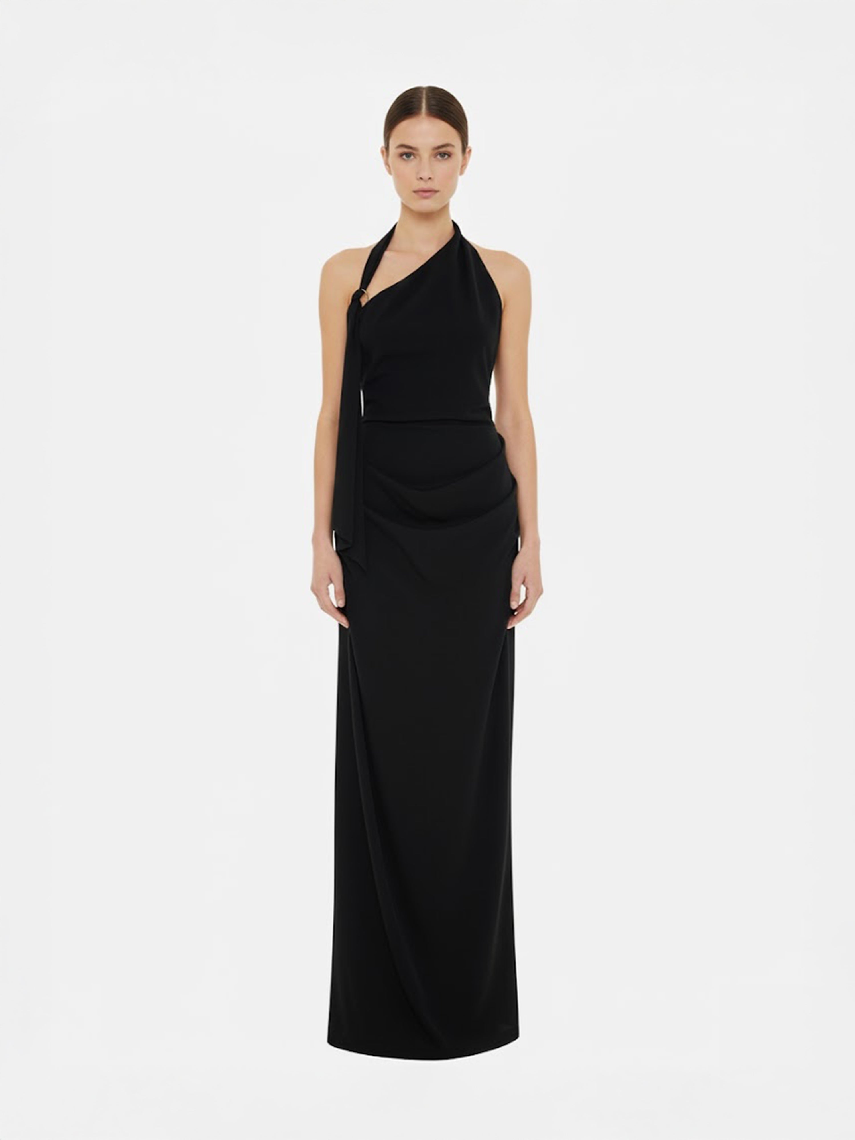 Gold Buckle Detail Long Sleeve Maxi Dress